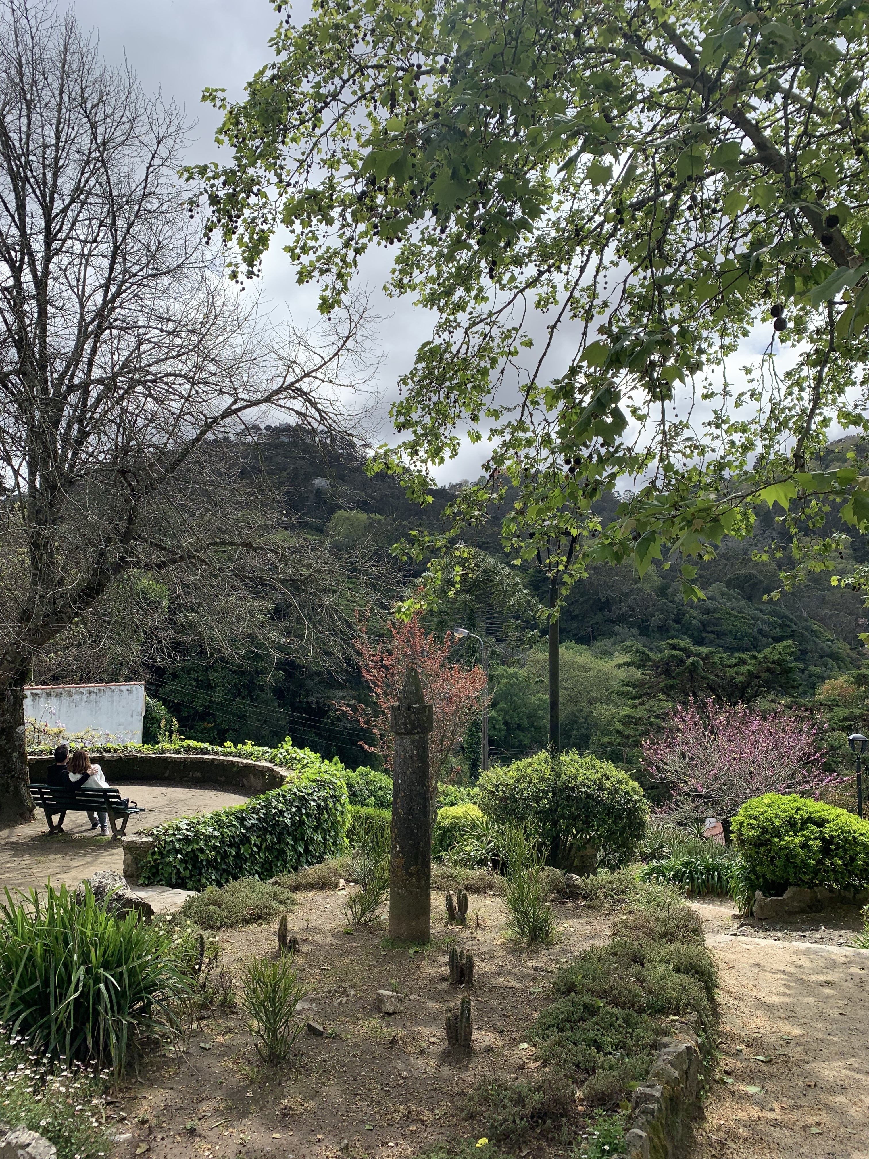 Dois pardais, quem sabe um casal, rasaram-nos com um voo flexuoso. Conversavam em viva-voz, carne e osso, à margem de ironias, uma prática em desuso. Sentados num dos bancos do Miradouro da Vigia, apaniguados pelo maior plátano, alienavam a vista do diálogo, dos pensamentos, pousando-a no Palácio da Pena, Castelo dos Mouros e Monte Sereno, plantados numa serra que ali permaneceria muito depois deles.